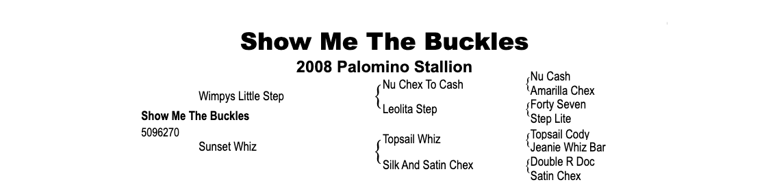 Show Me The Buckles, a 2008 palomino stallion, has made a significant impact in the reining horse industry. Sired by the renowned Wimpys Little Step and out of Sunset Whiz (by Topsail Whiz), he boasts a pedigree rich in performance excellence.